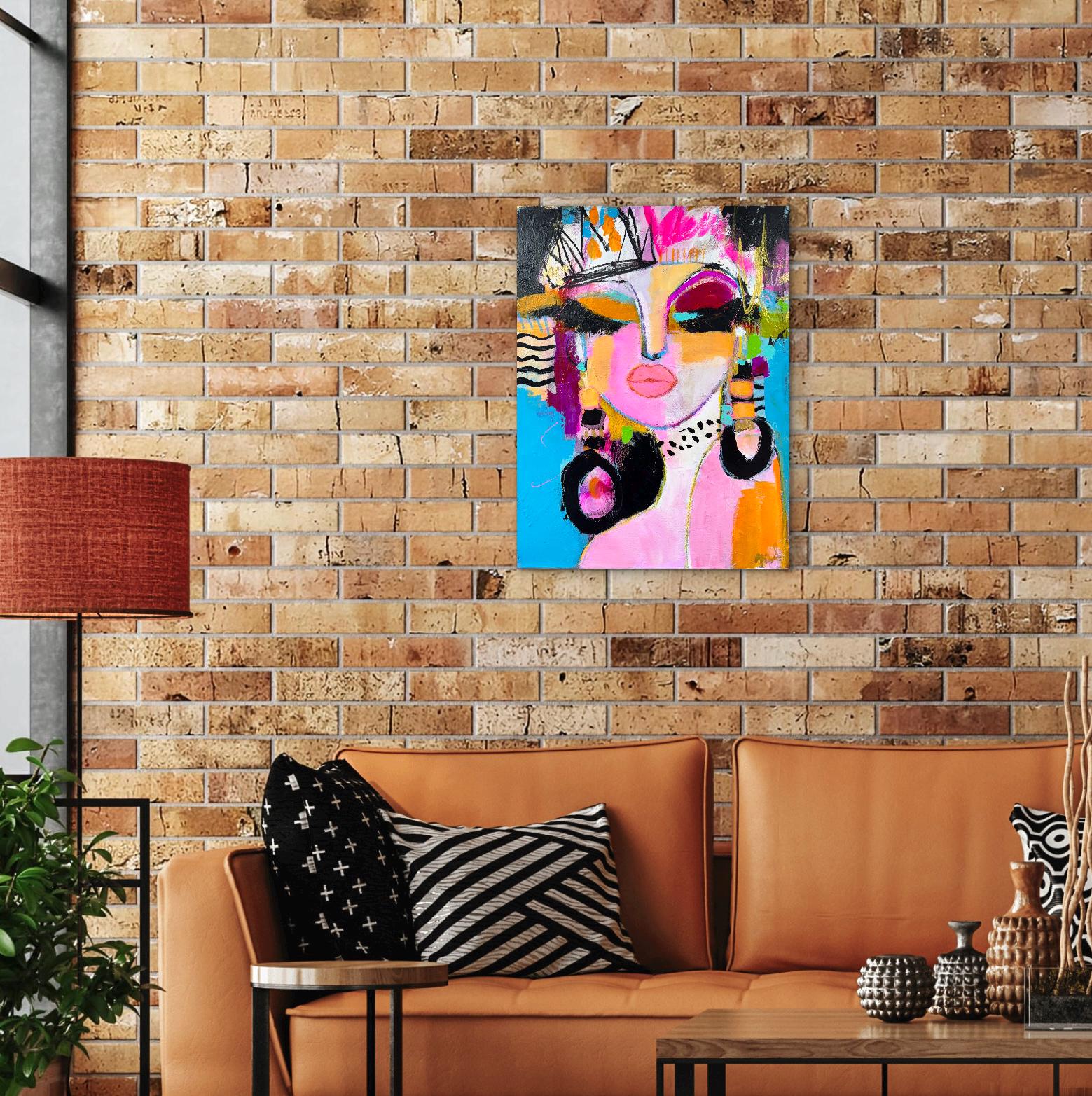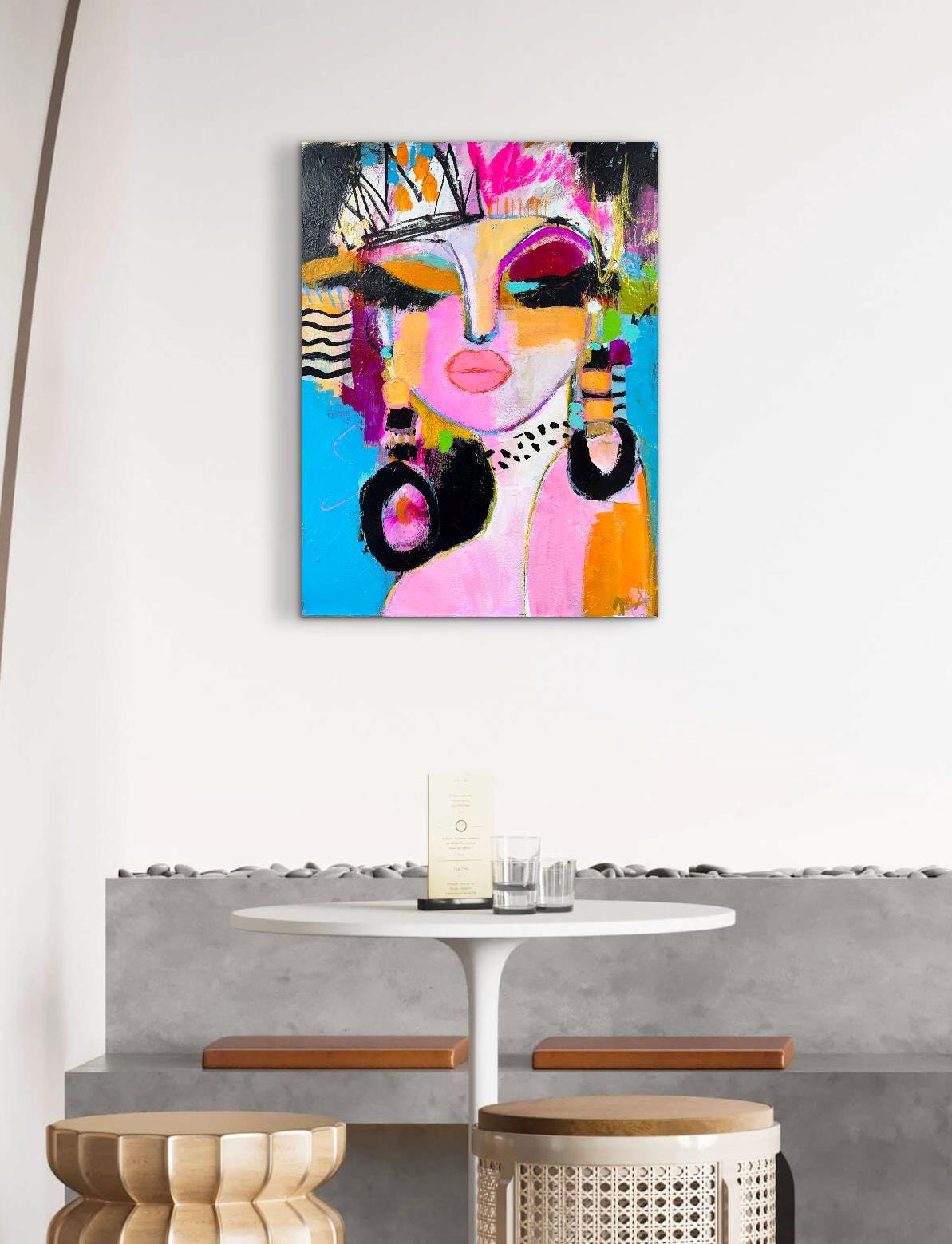 This painting is perfect for collectors who love expressive portraiture, colorful modern art, and bold feminine energy.