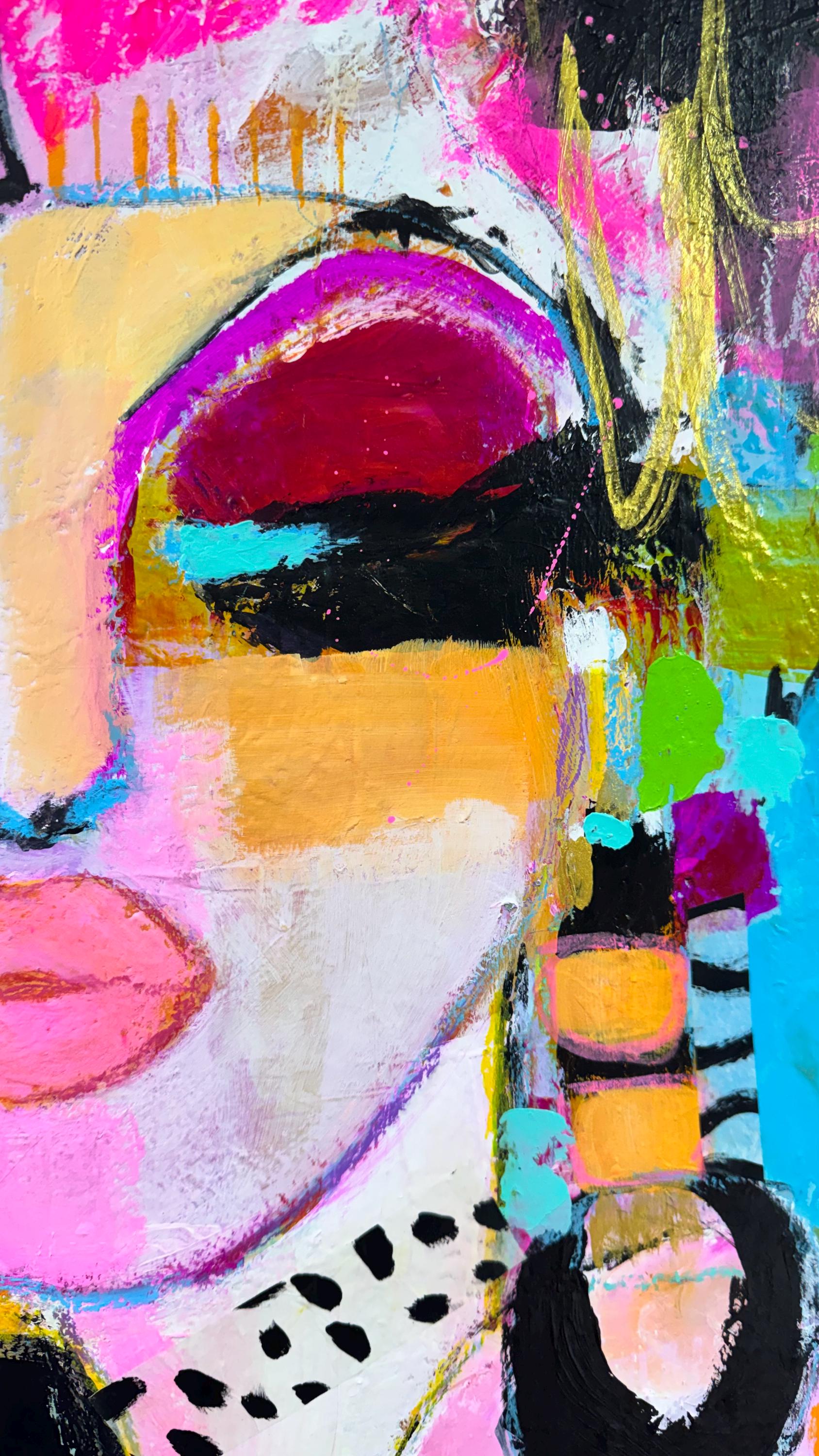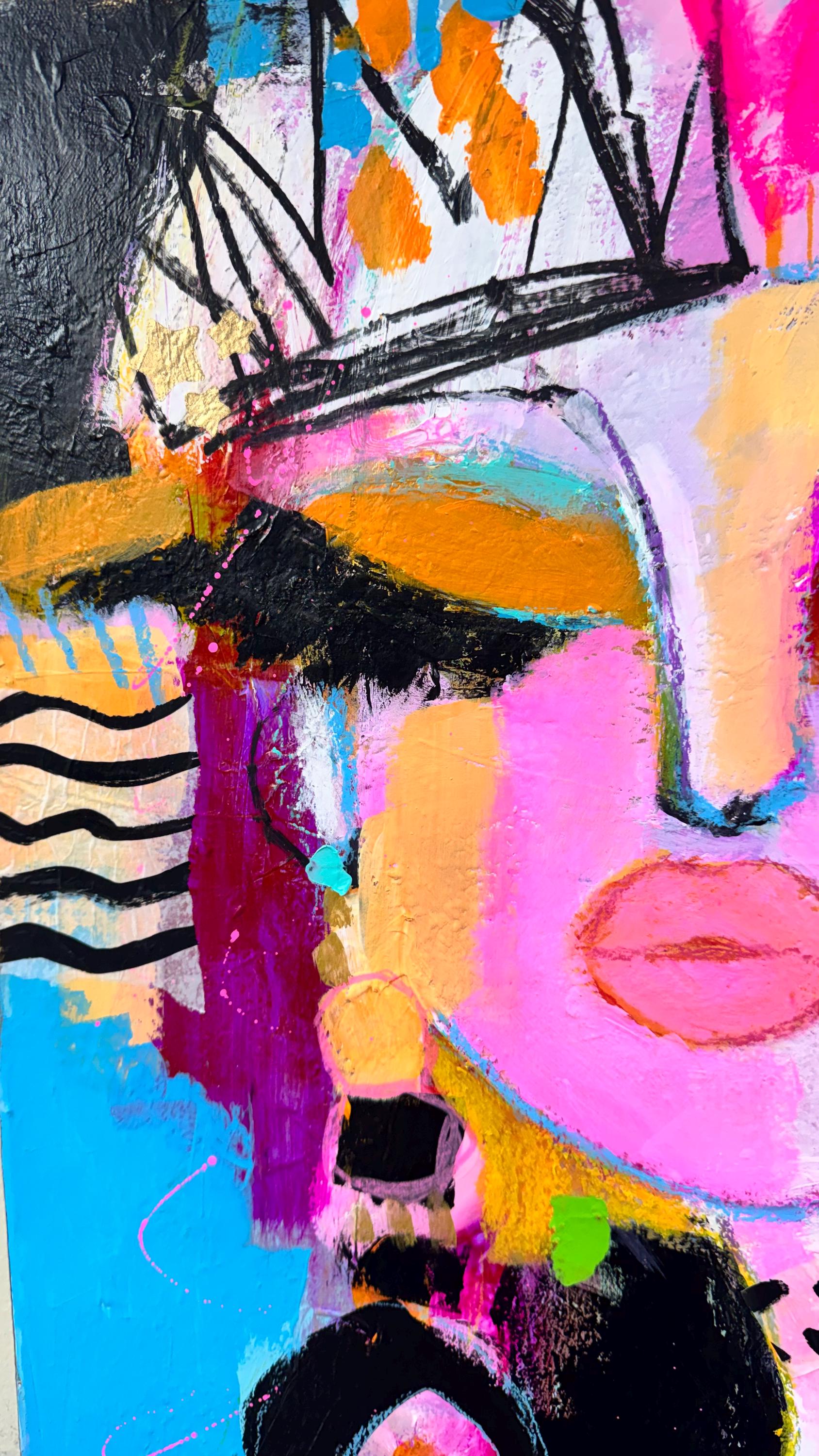 Add a striking statement piece to your home, commercial space, studio, or gallery wall with this vibrant contemporary portrait.